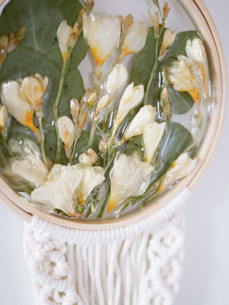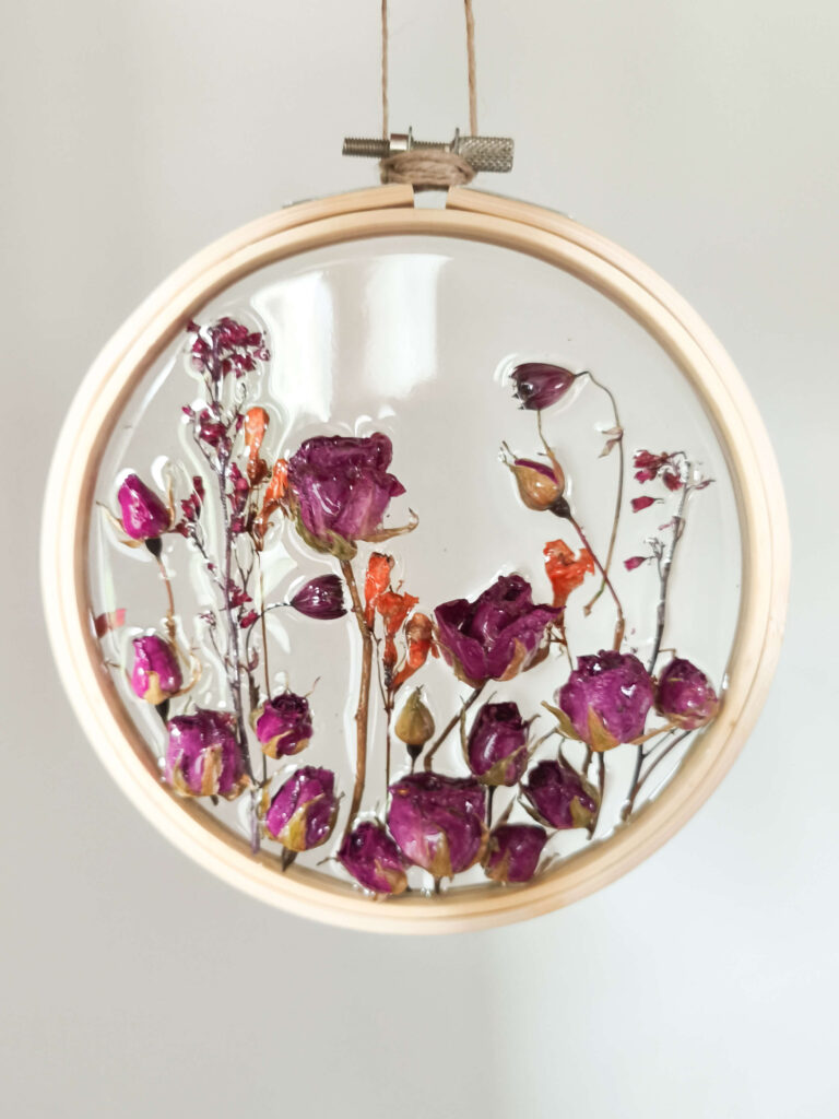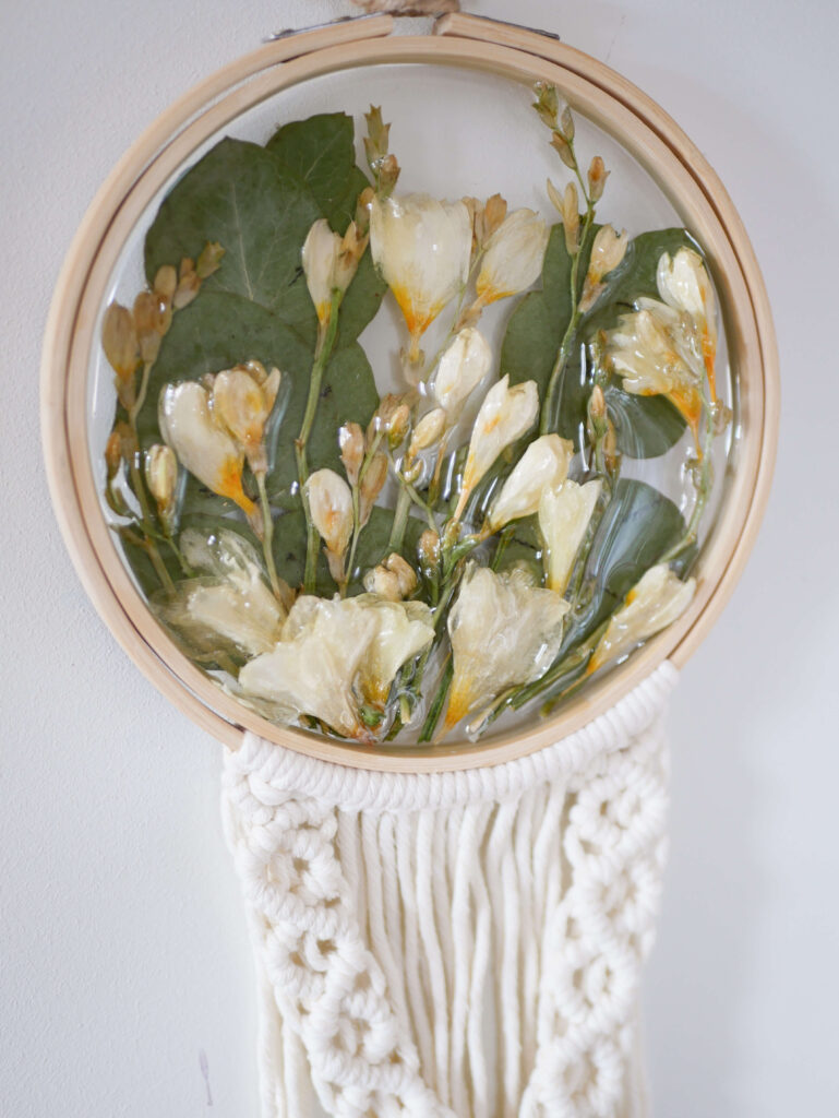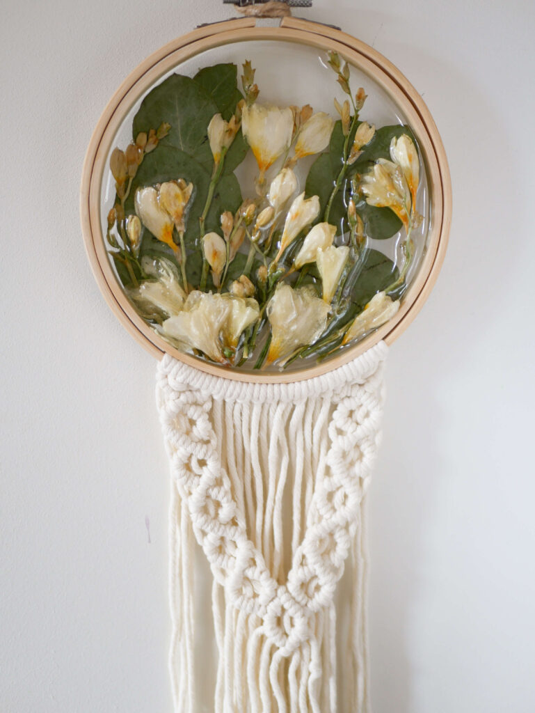Bardzo oryginalnym prezentem są również tamborki z zatopioną łąką z dodatkiem makramowych splotów lub bez. Jak wolisz. Pisałyśmy już, że wszystkie kwiaty zbieramy i suszymy same? Na terenie Podhala są cudne kwiatowe łąki, więc jeżeli kochasz góry, osoby obdarowane również, to tym bardziej bedzie to trafiony prezent.