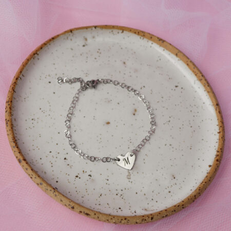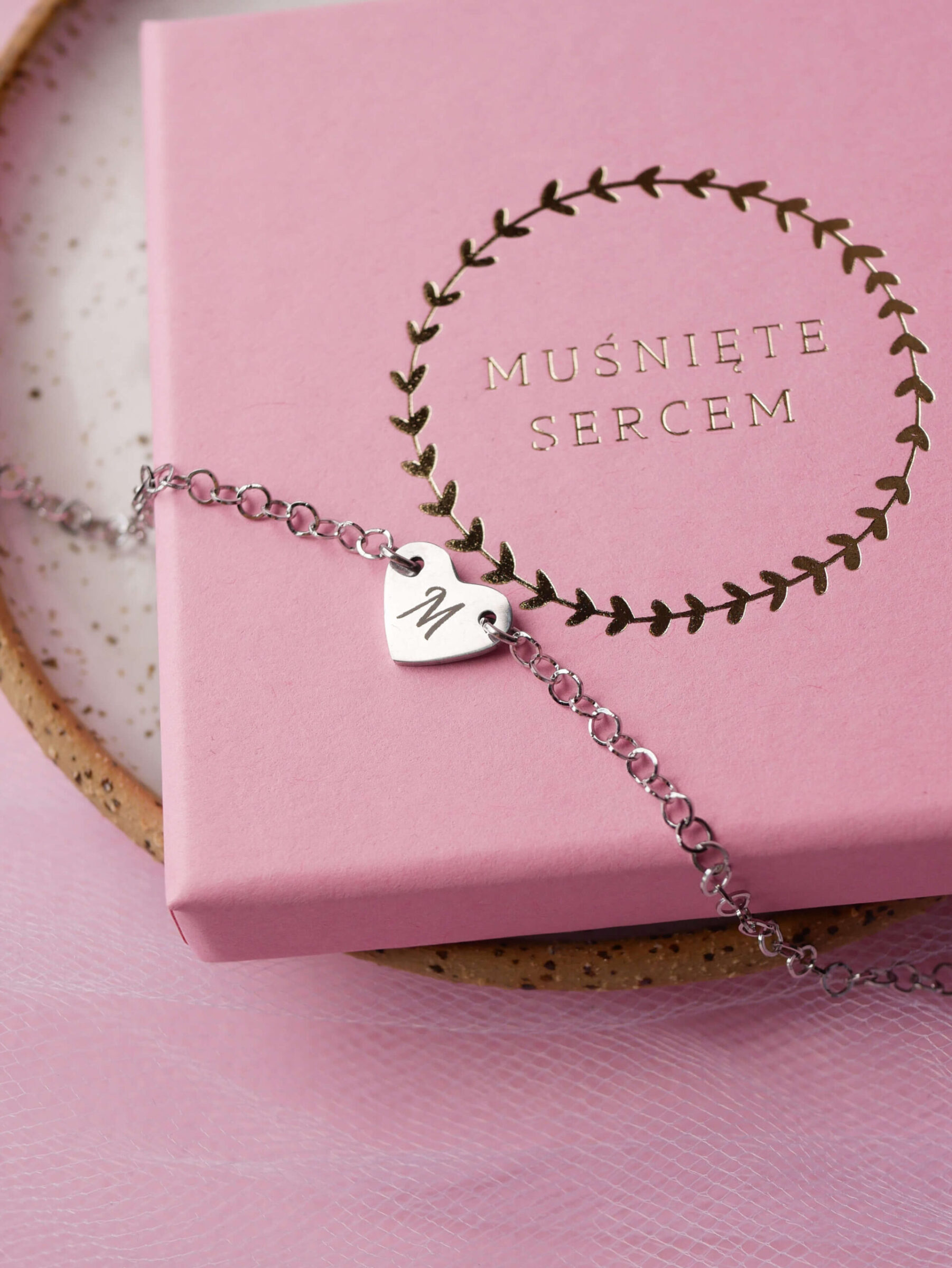 Minimalistyczna bransoletka z grawerowanym inicjałem w serduszku na eleganckim łańcuszku