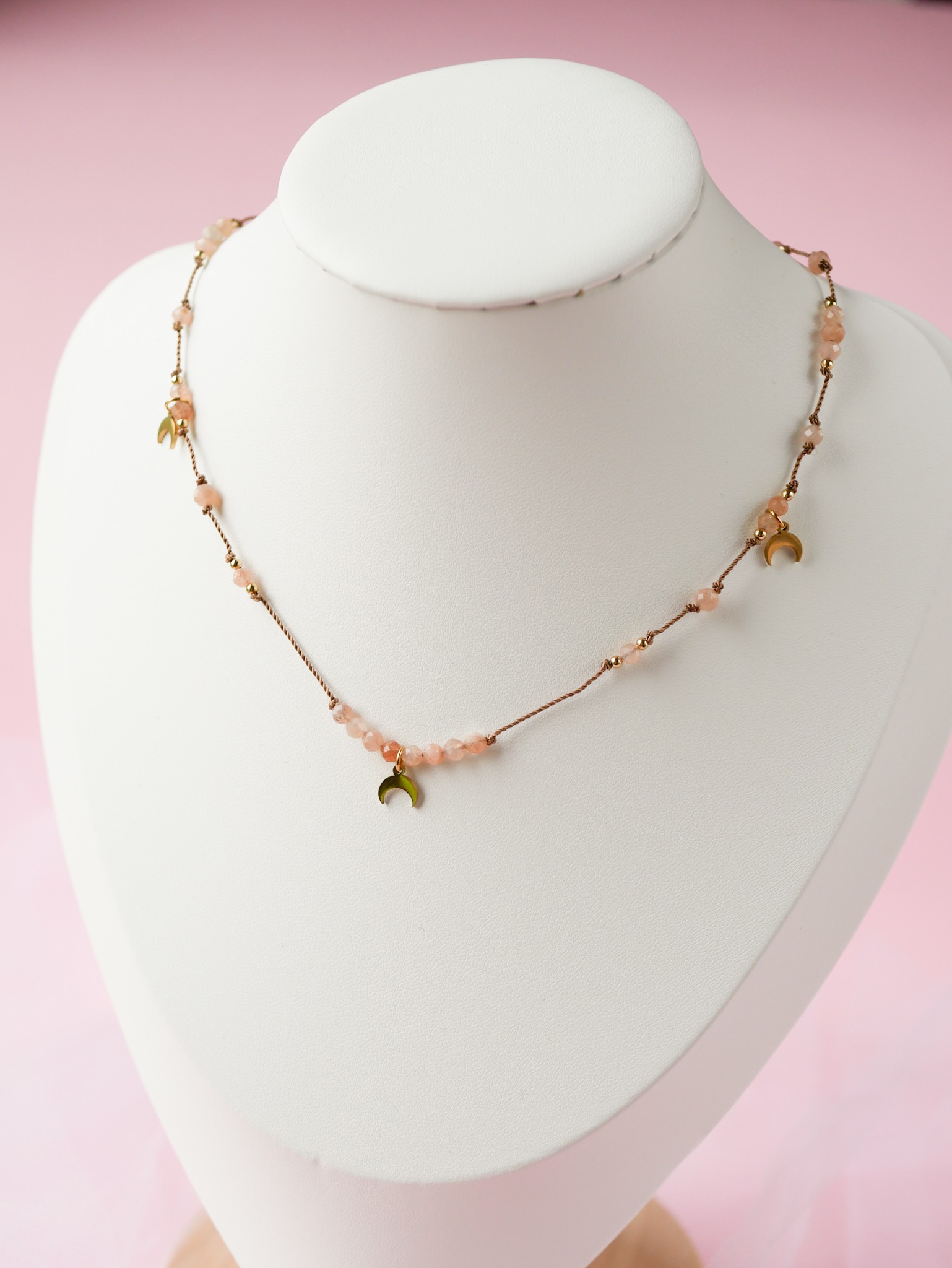 Regulowany naszyjnik z kamieni słonecznych i rogów obfitości.