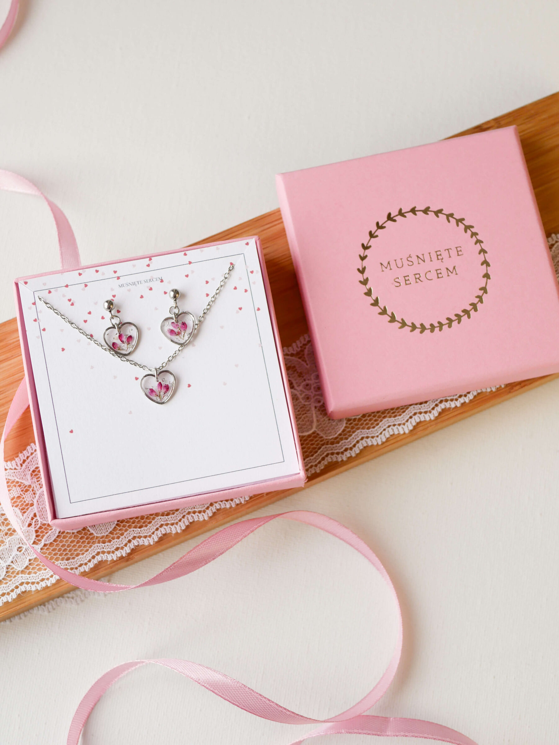 Komplet & serduszka wrzosiec srebro