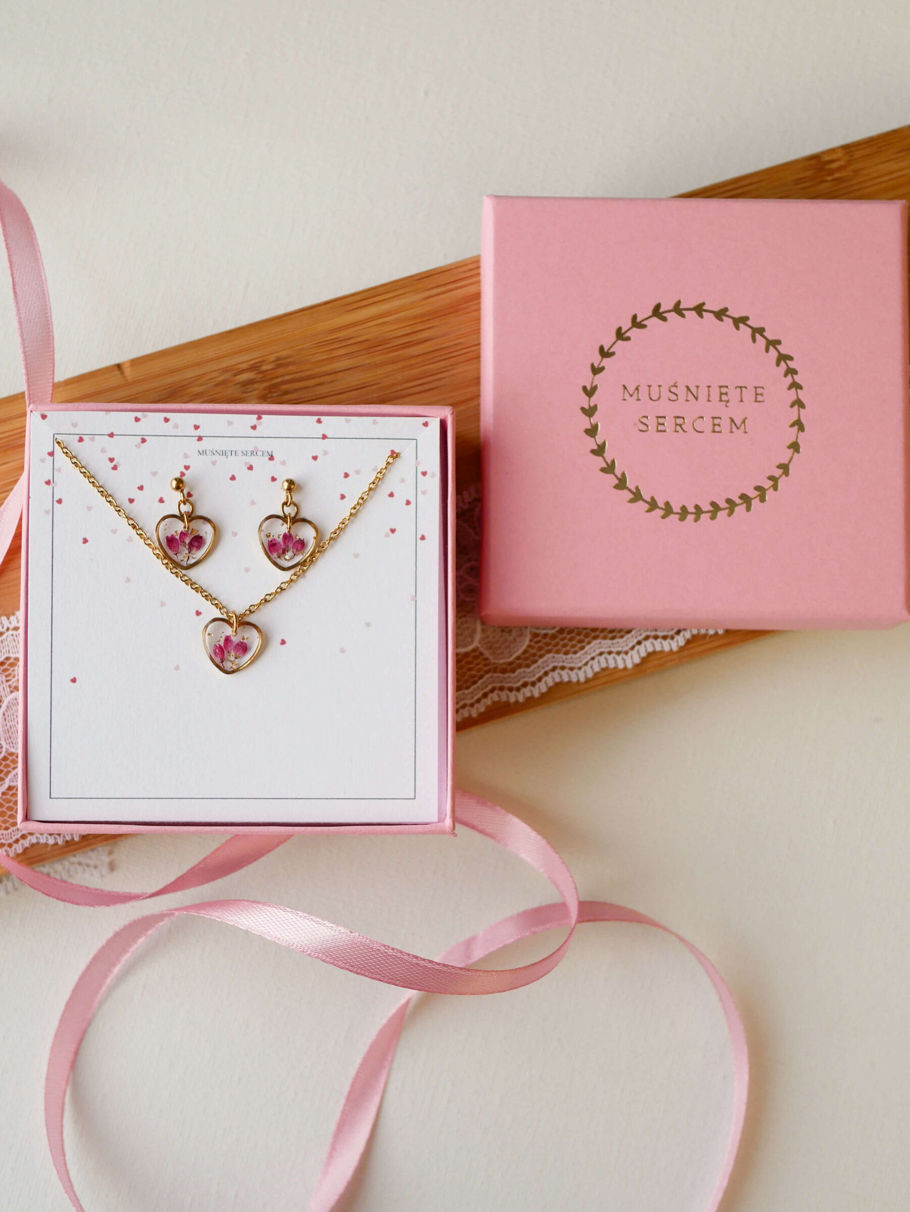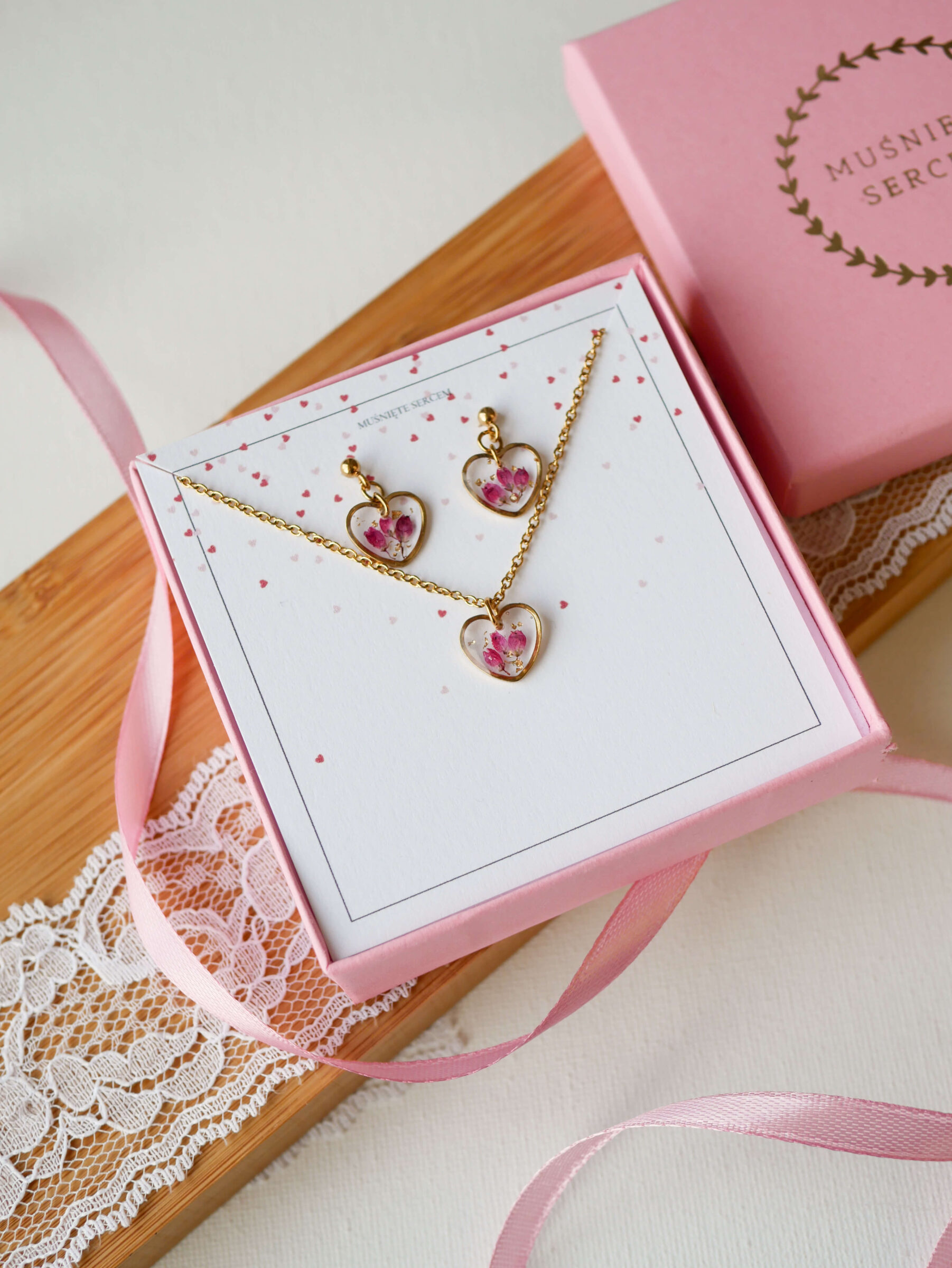 Komplet & serduszka wrzosiec złoto